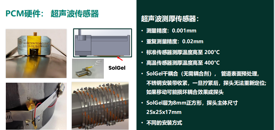 全球頂級的超聲波測厚探頭實時在線採(cǎi)集數據,領先的移動數據傳輸能力,基於(yú)全廠數據的進行軟件智能化分析的能力。